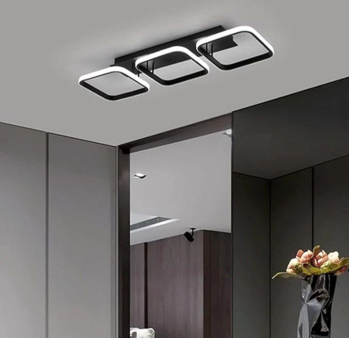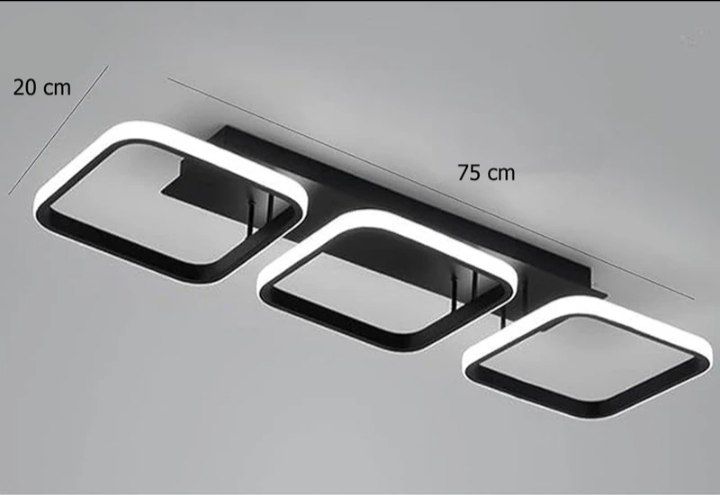 لوستر سقفی سه شعله نور به بیرون به ابعاد 20*75 سانتیمتر و ارتفاع 15سانتیمتر ،رنگ بدنه مشکی استاتیک با نور نچرال- آفتاب-مهتاب و سه حالته